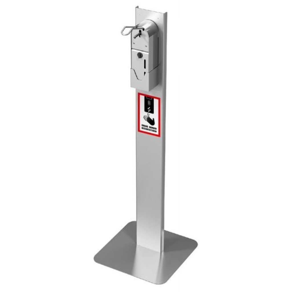 Deze handdesinfectie zuil is gemaakt van rvs en daardoor gemakkelijk te reinigen. De zuil is voorzien van een dispenser met elleboogbediening zodat je contactloos je handen kan reinigen. De dispenser heeft een eigen reservoir welke je kan vullen met een desinfectiemiddel naar wens. Je bent dus niet afhankelijk van een bepaalt merk of leverancier.
