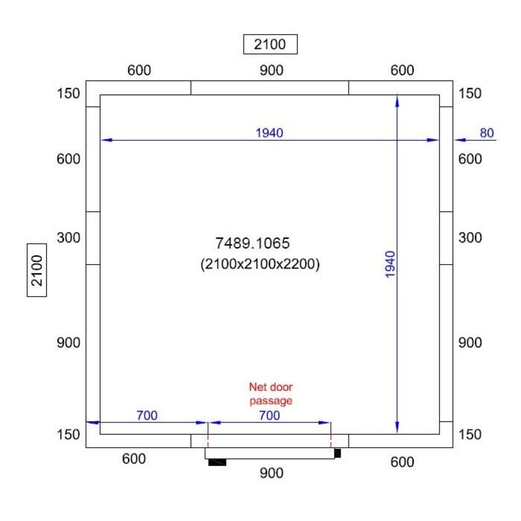 - Afm. inwendig: 1940x1940x2040 mm