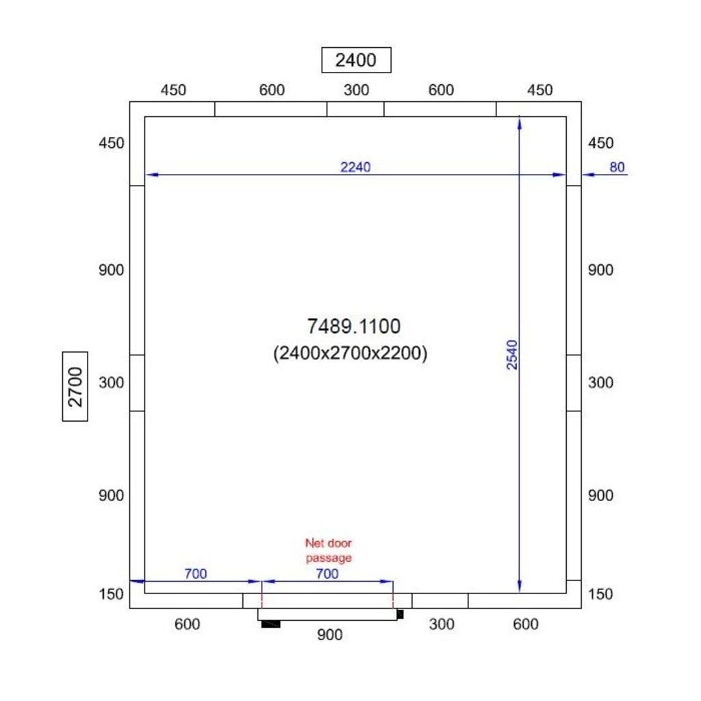 - Afm. inwendig: 2240x2540x2040 mm