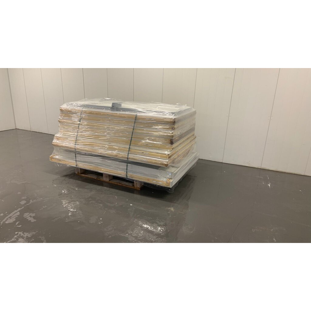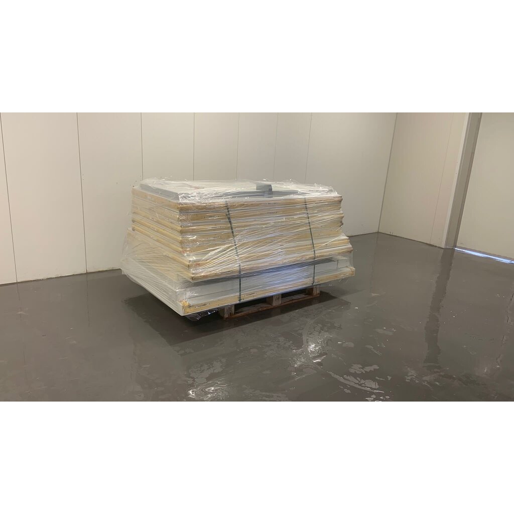 De koelcel is gedemonteerd en verpakt op een pallet dus klaar voor transport