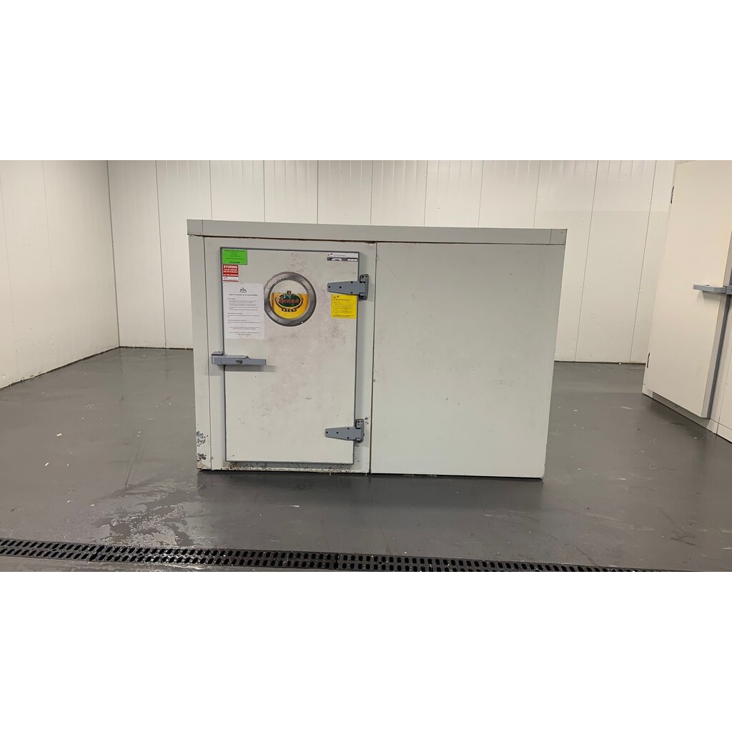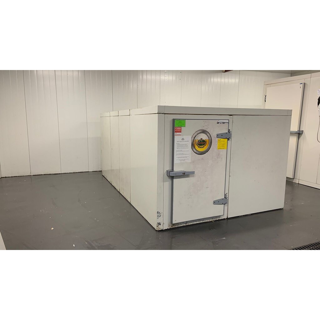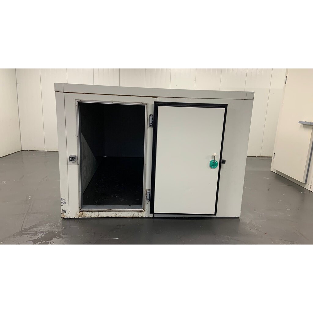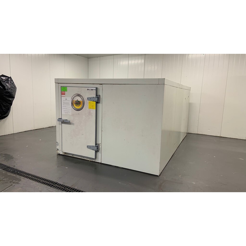 De koelcel is gedemonteerd en verpakt op een pallet dus klaar voor transport