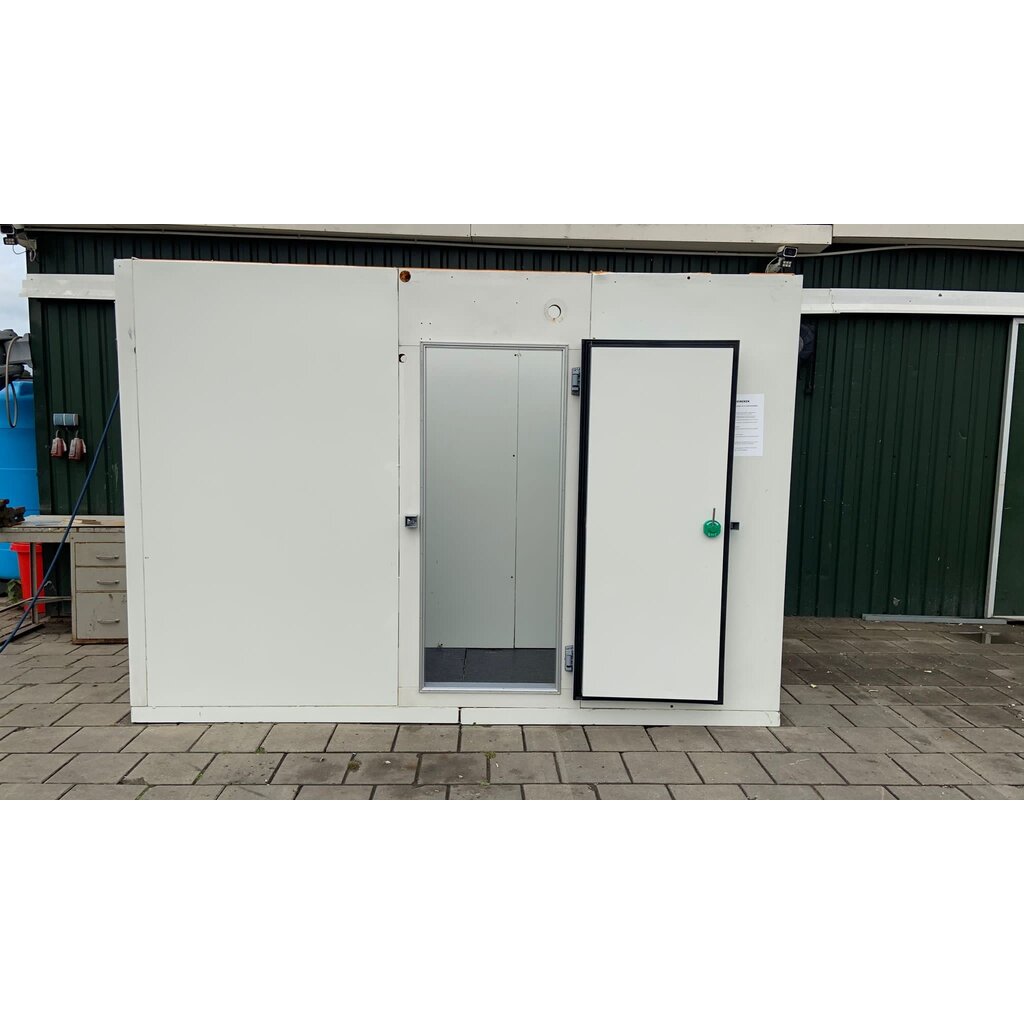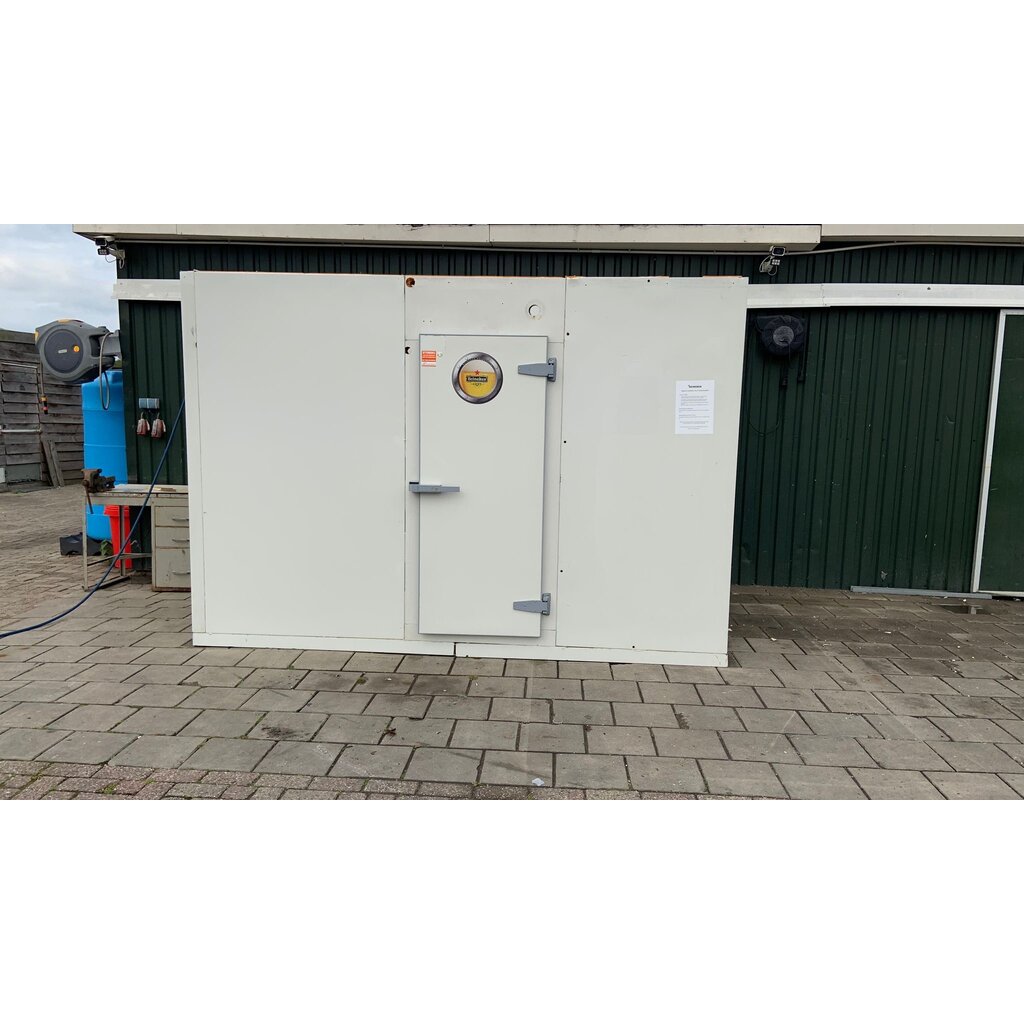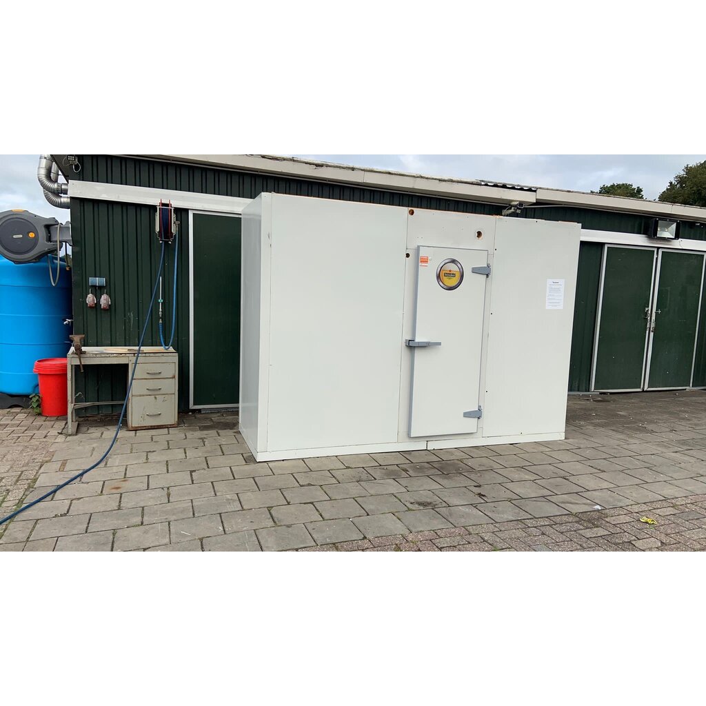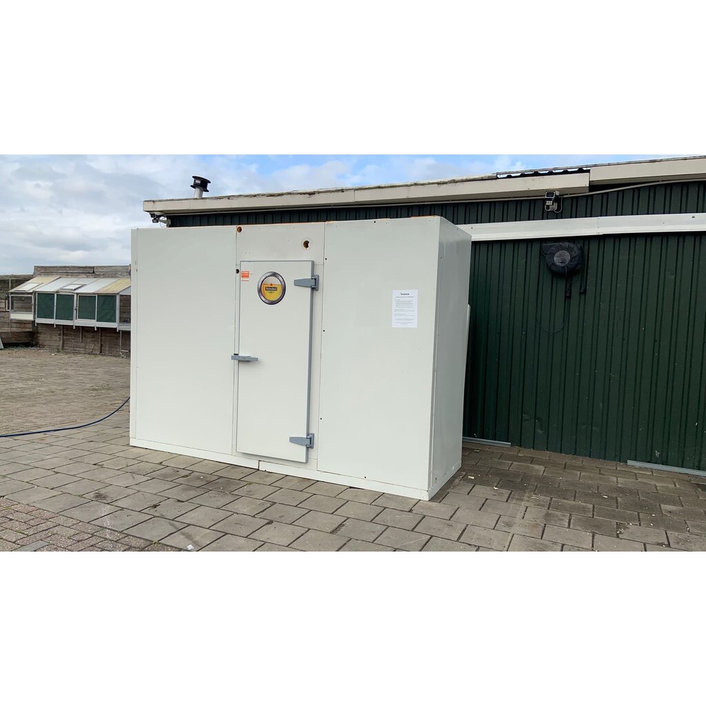 De koelcel is gedemonteerd en verpakt op een pallet dus klaar voor transport