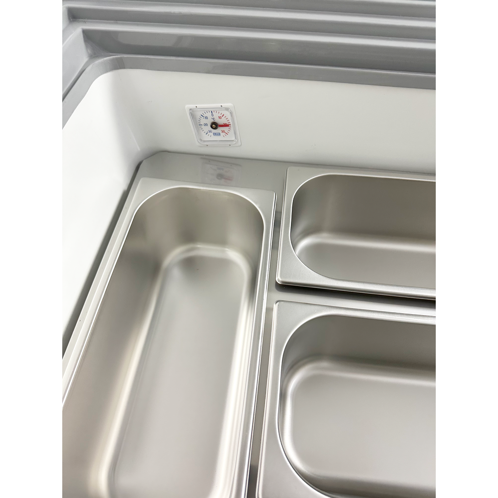 De Combisteel Corsica schepijsvitrine is geschikt voor 6 x 5 liter schepijsbakken en is uitstekend toe te passen in combinatie met de verkoop van crêpes, pannekoeken en ijsspecialiteiten.Voorzien van statische koeling met een temperatuurbereik van -14˚C / -24˚C