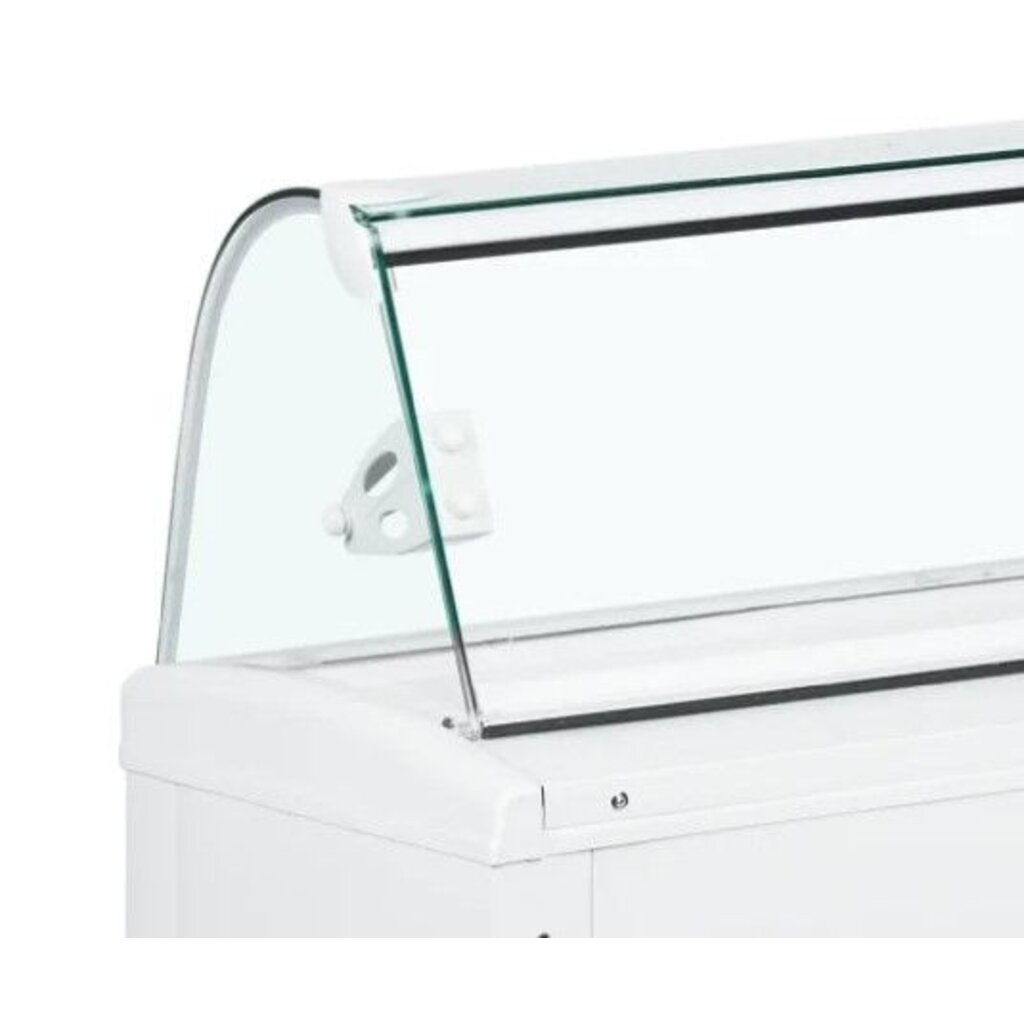 De Combisteel 7295.0015 Fiji 7 schepijsvitrine is geschikt voor 7+7 x 5 liter schepijsbakken en is uitstekend toe te passen in combinatie met de verkoop van crêpes, pannekoeken en ijsspecialiteiten. Voorzien van geforceerde koeling met een temperatuurbereik -14˚C / -16˚C. Het geheel is verrijdbaar en voorzien van een glazen opbouw.