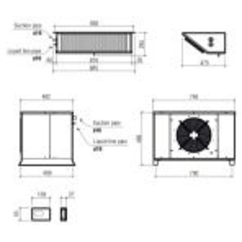 Splitunit koelmotor met een temperatuurbereik van 0/+5˚C.