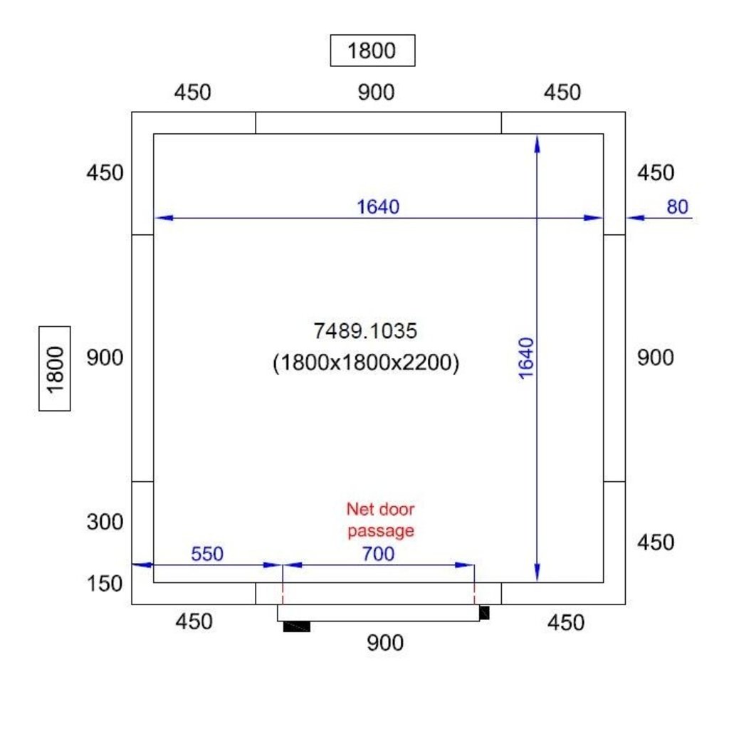 - Afm. inwendig: 1640x1640x2040 mm